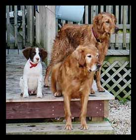 Shelley, Thorpe and I are so thankful I found your website. I knew from our first phone call that one of your Brittany's would be right for our family. We thank you for all the time you have spent with us over the last few months......our visit to your home, the phone calls, and many e-mails and photos. It has been wonderful to have the opportunity to know our Bailey from the start. Bailey is just beautiful. She is happy, healthy and very curious. The kids are really enjoying all of her energy. Bailey has quickly molded into our home. Thorpe, Tyler and Emily love showing her to all their friend......she is becoming the neighborhood pet. They love to take her for walks.....I keep waiting for that to end, but so far so good. With the boys in school all day, Bailey has become Emily's best friend. She tells everyone that Bailey is her "sister". I remember commenting that I wanted her to be affectionate just like Bridget.....and she is. She loves to cuddle and give "hugs". She is very quick to learn and has brought much happiness to our family. Thank you for everything you have done and continue to do!!! We feel truly blessed to have Bailey and to have made new friends in both of you. We guarantee that you will see Bailey every July. Who would have guessed that a search for a family pet in Virginia would led us to Ontario......so close to the cottage. Thanks again for the wonderful care and love you gave our Bailey. It truly shows!!!!! We tell her "Grandma Shelley" loves her every day :) Hugs, Kelly |
